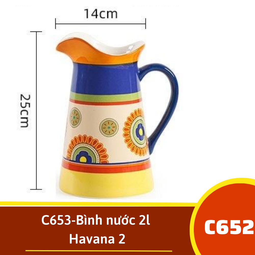 C653-Bình nước 2l Havana 2 vẽ tay xuất Âu omk