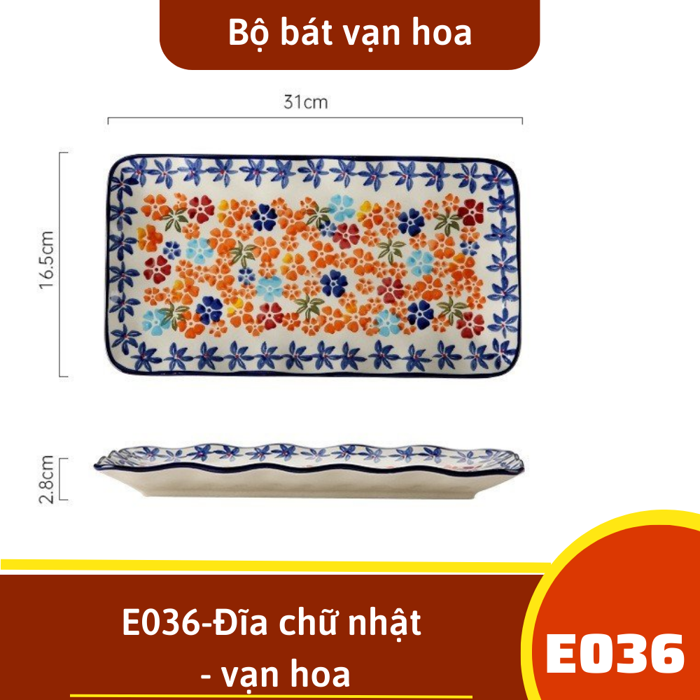 E036-Đĩa chữ nhật - vạn hoa