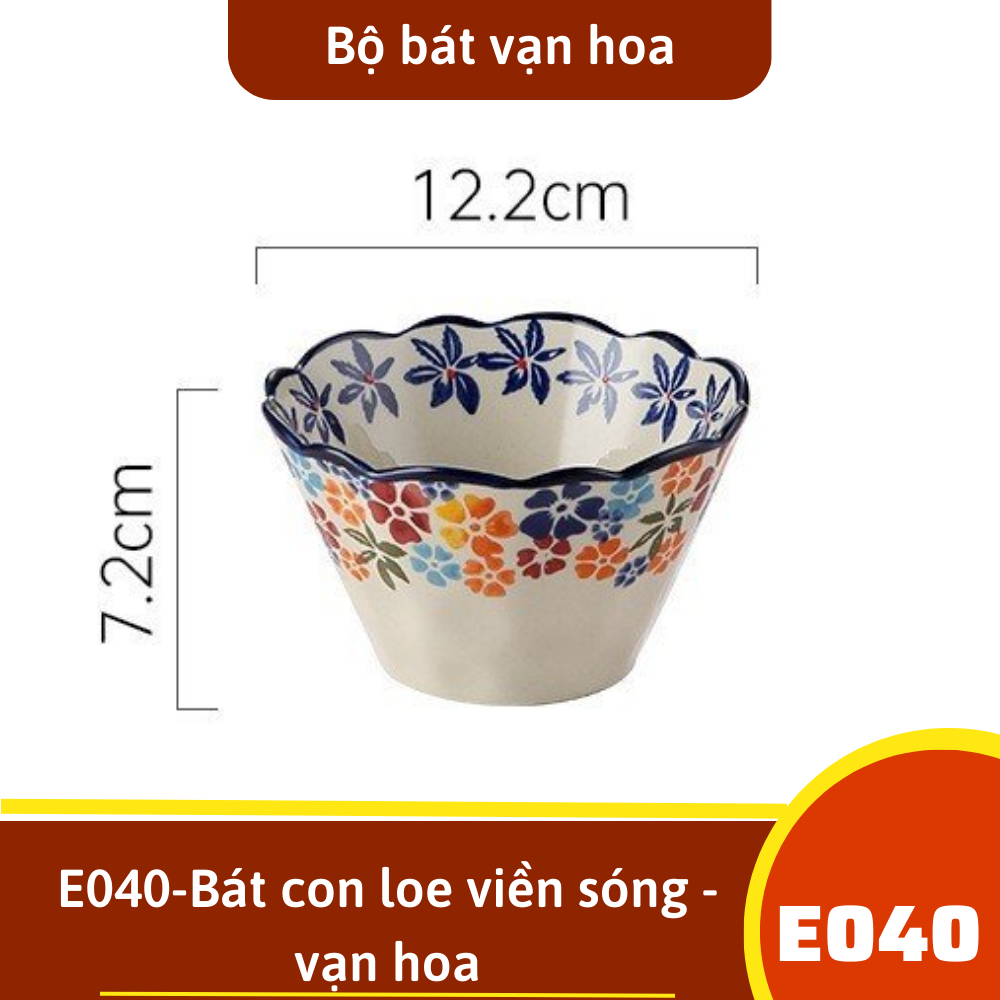 E040-Bát con loe viền sóng - vạn hoa