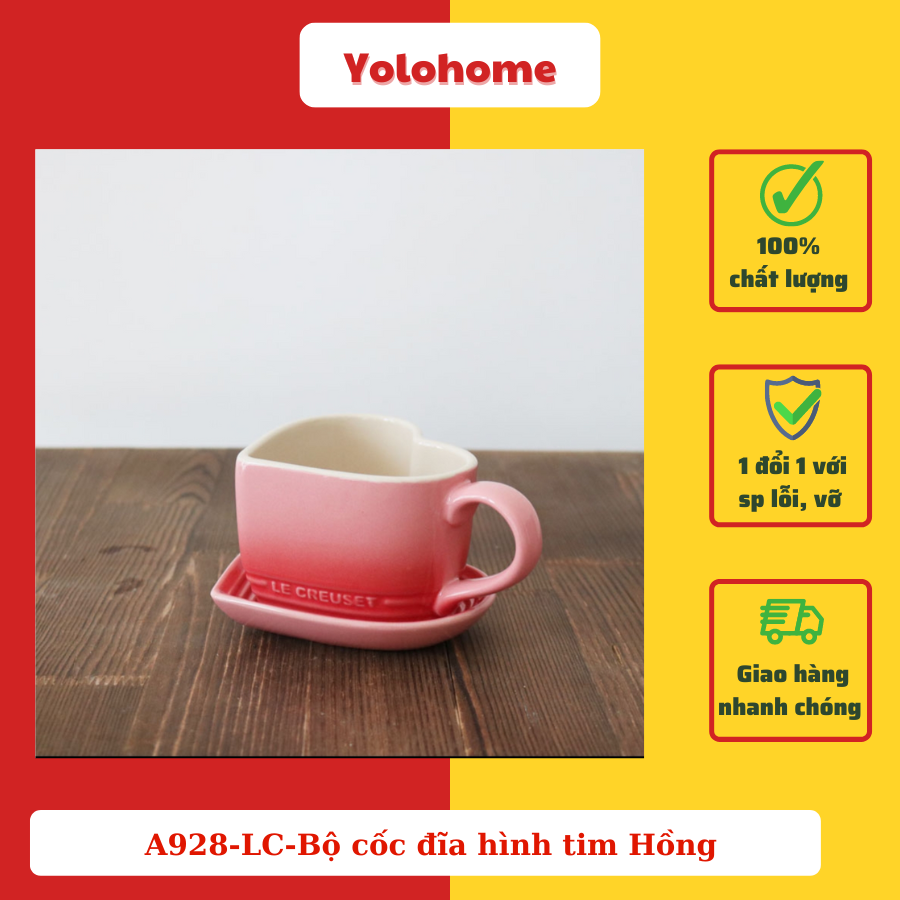 A928-LC-Bộ cốc đĩa hình tim Hồng nhạt