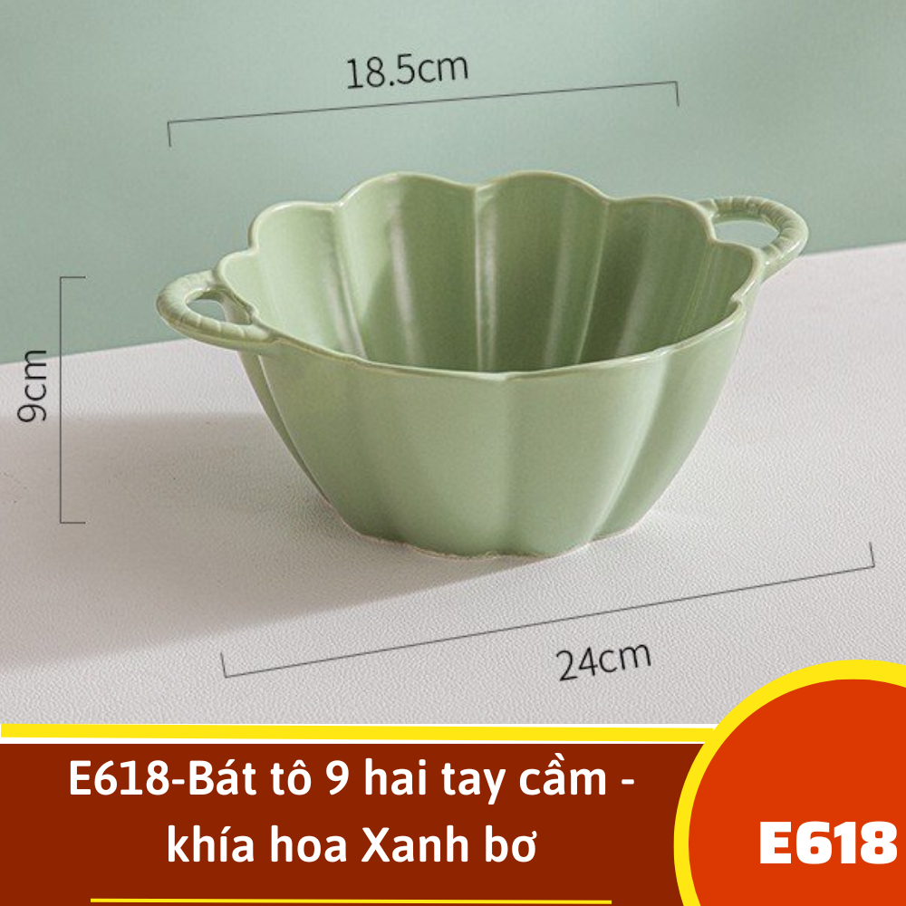 E618-Bát tô 9 hai tay cầm - khía hoa Xanh bơ
