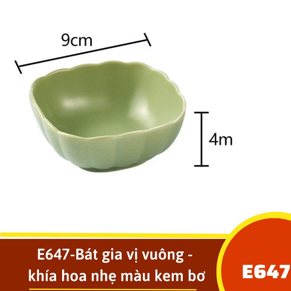 E647-Bát gia vị vuông - khía hoa nhẹ màu kem bơ