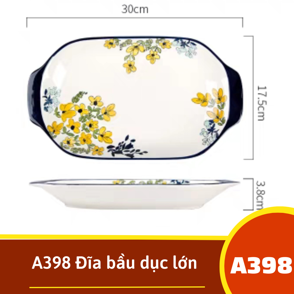 A398 Đĩa bầu dục lớn lớn - Hoạ tiết mai vàng
