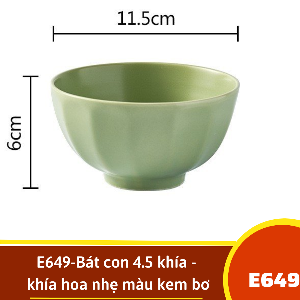 E649-Bát con 4.5 khía - khía hoa nhẹ màu kem bơ