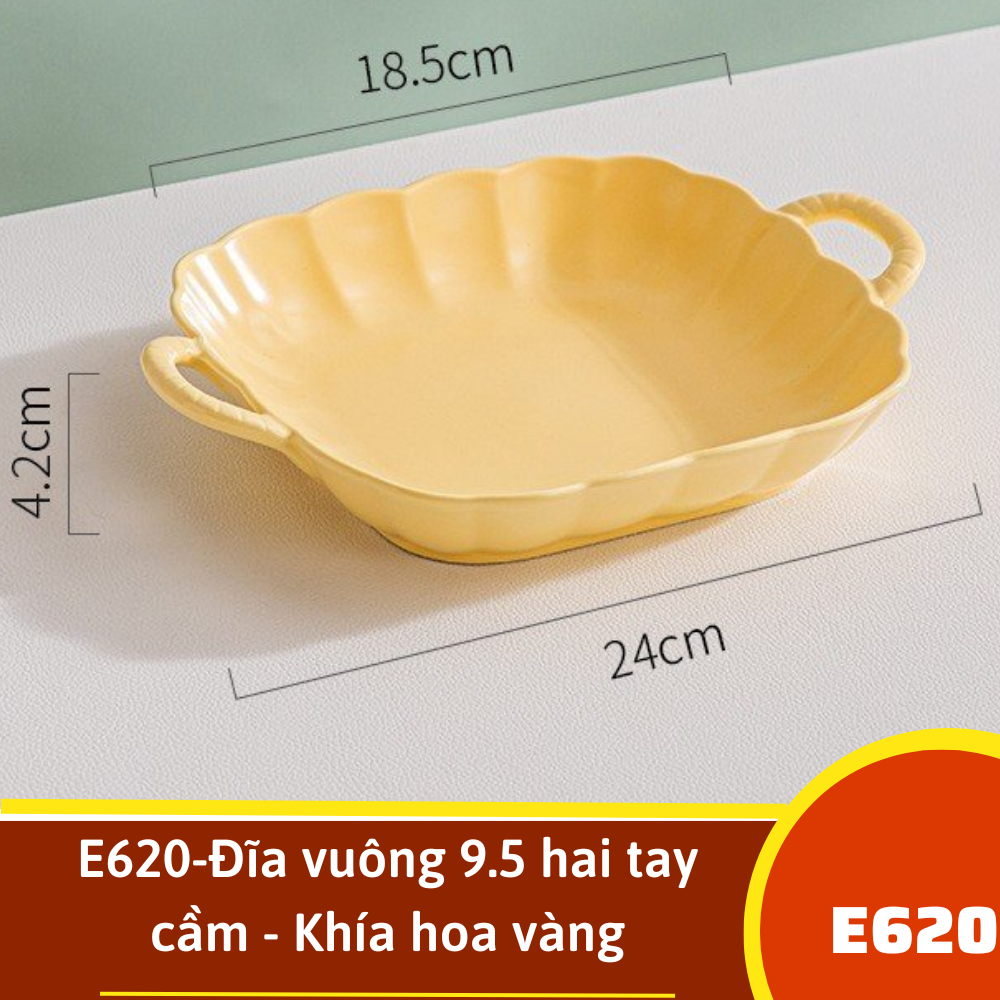 E620-Đĩa vuông 9.5 hai tay cầm - Khía hoa vàng