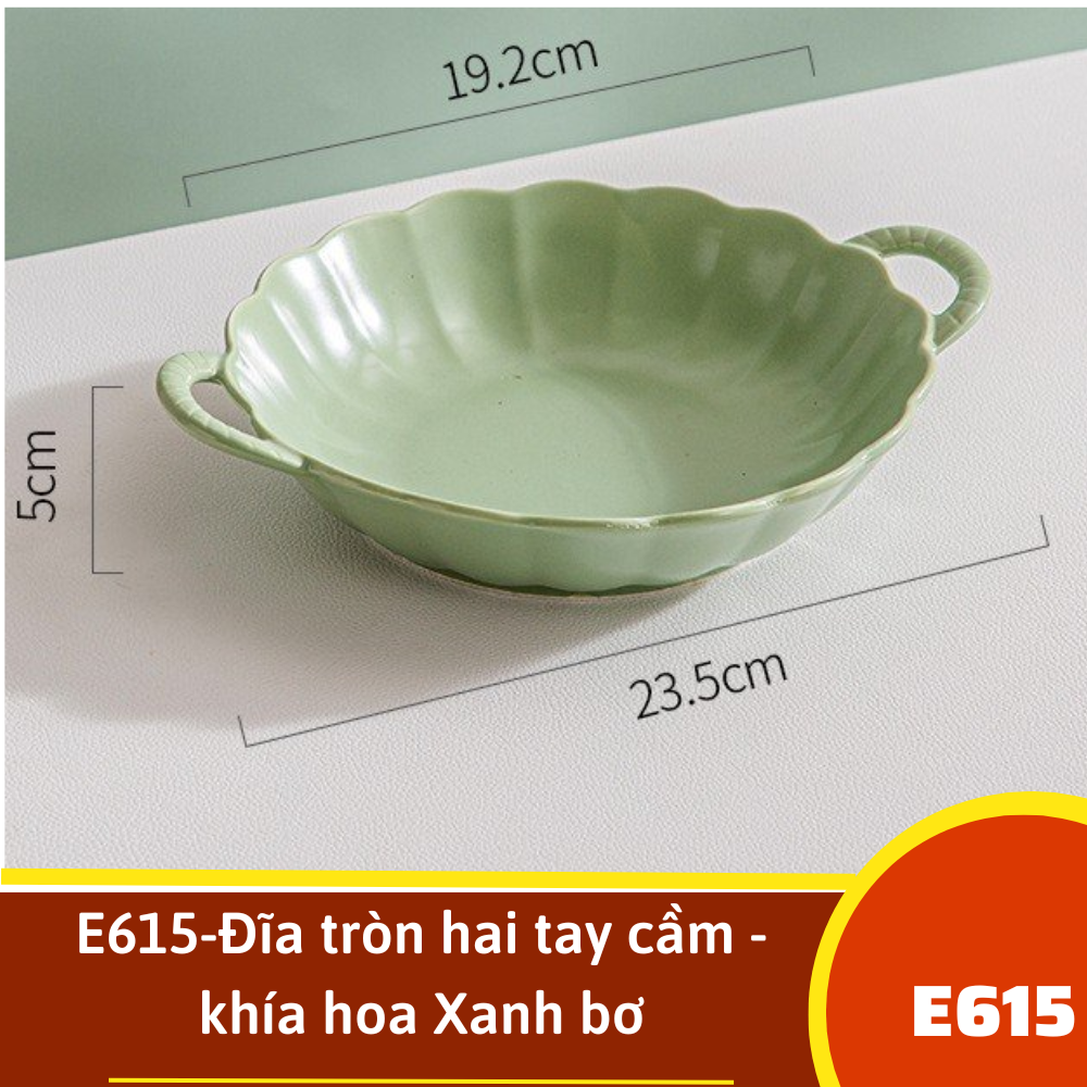 E615-Đĩa tròn hai tay cầm - khía hoa Xanh bơ