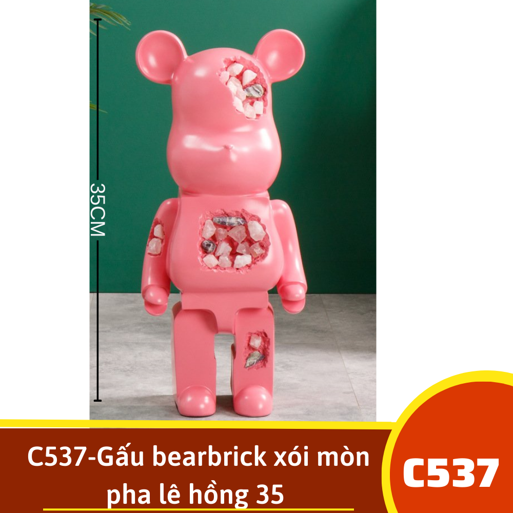 C537-Gấu bearbrick xói mòn pha lê hồng 35