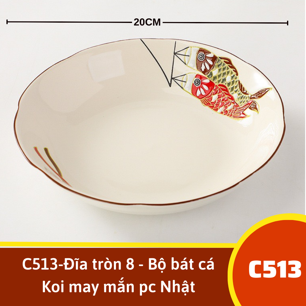C513-Đĩa tròn 8 - Bộ bát cá Koi may mắn pc Nhật