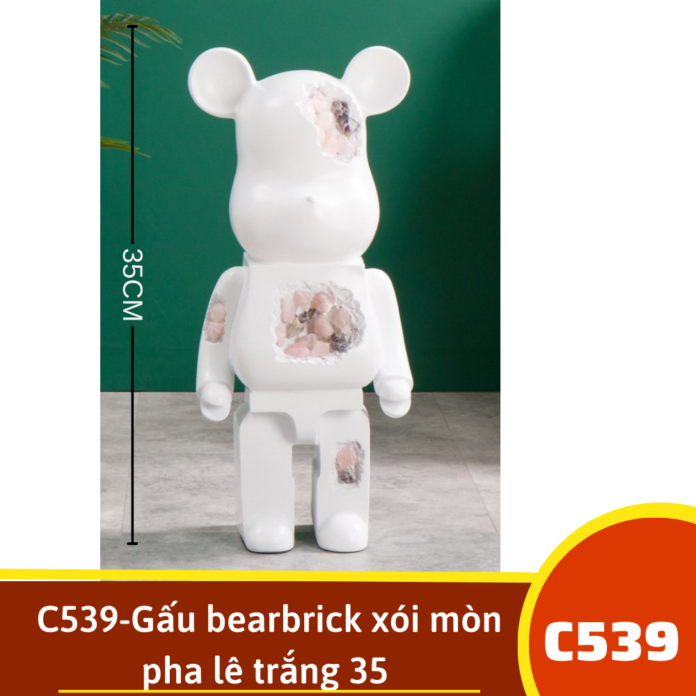 C539-Gấu bearbrick xói mòn pha lê trắng 35
