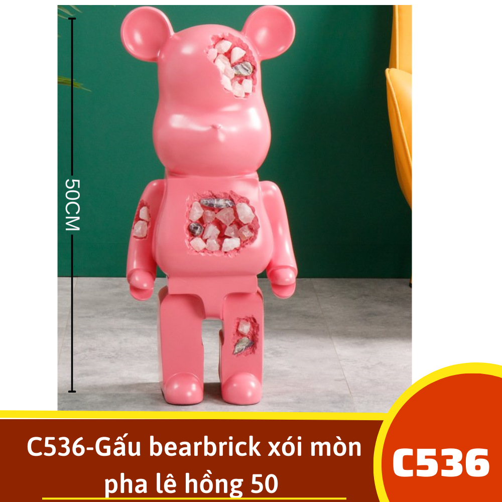 C536-Gấu bearbrick xói mòn pha lê hồng 50