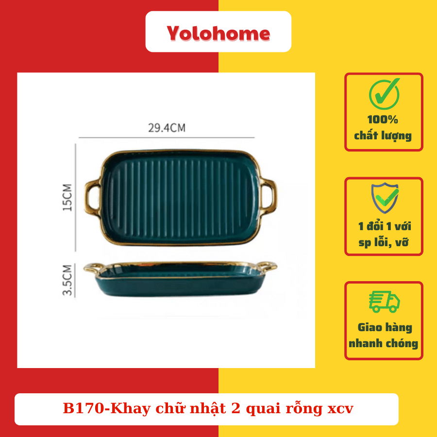 B170-Khay chữ nhật 2 quai rỗng xcv
