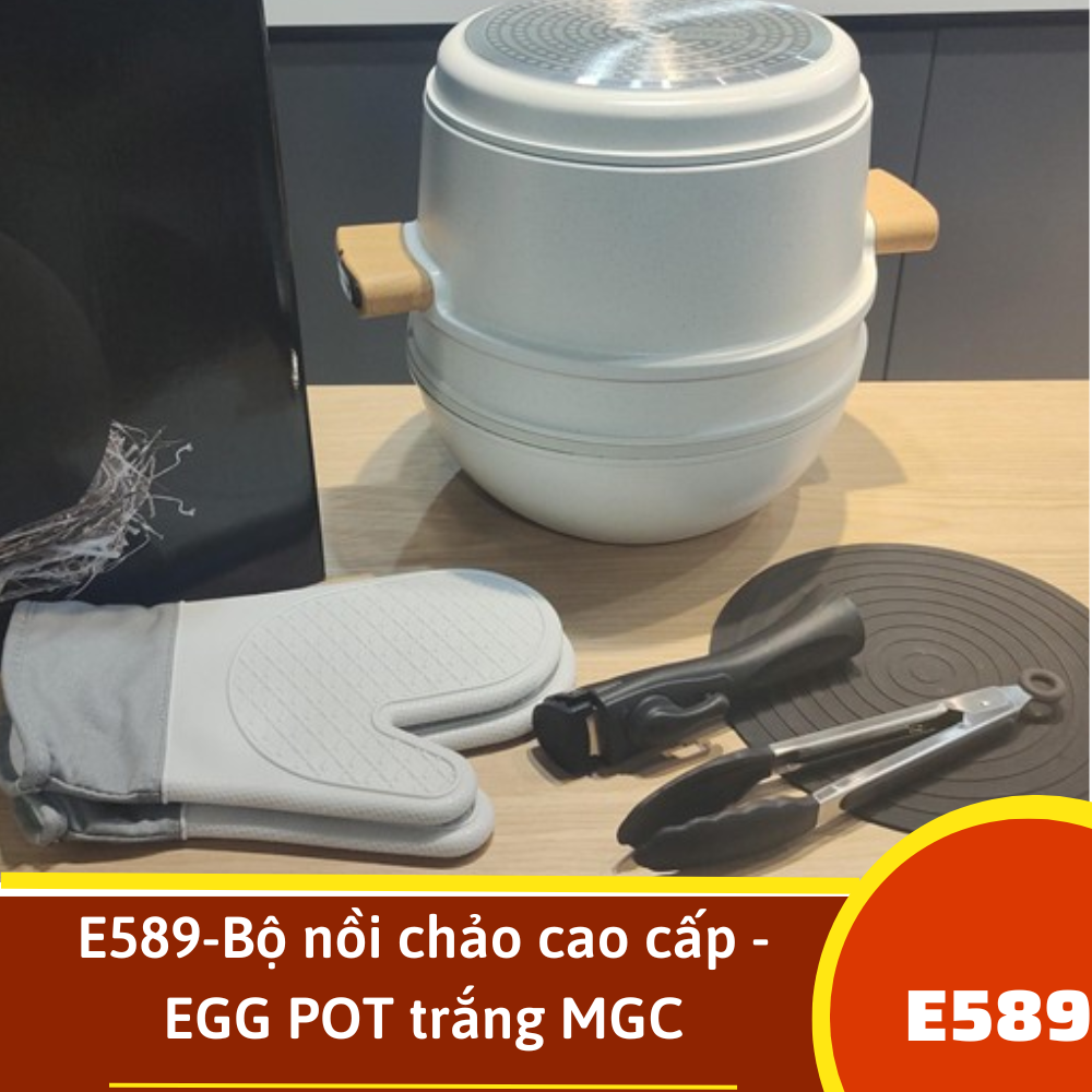 E589-Bộ nồi chảo cao cấp - EGG POT trắng MGC-COOK LOVER