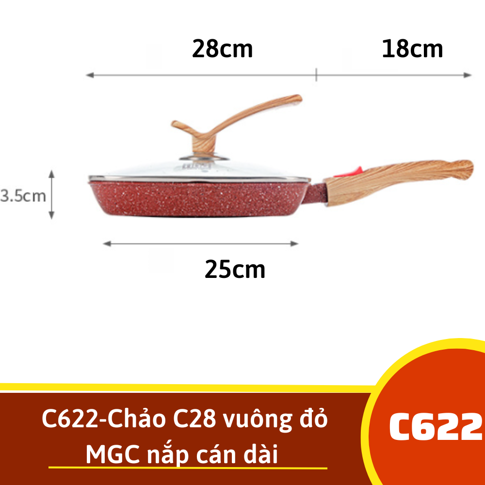 C622-Chảo C28 vuông đỏ MGC nắp cán dài